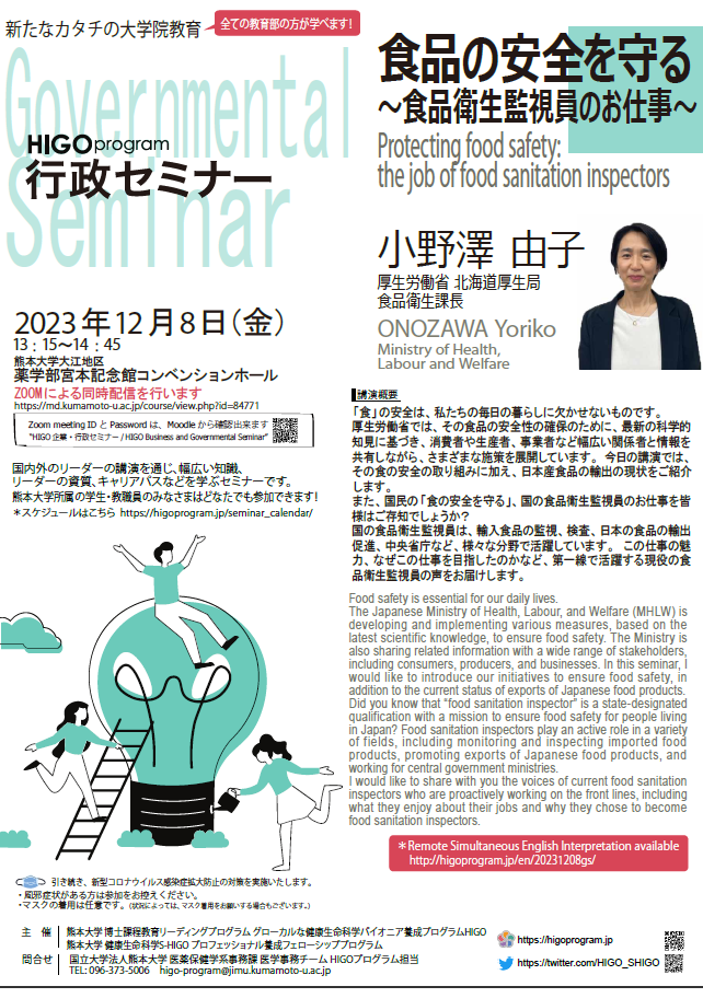 演題: 食品の安全を守る~食品衛生監視員のお仕事~